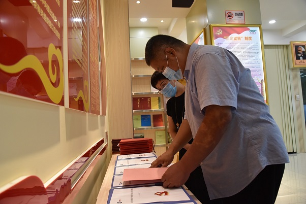 指導組一行現(xiàn)場查閱相關(guān)材料。吳思敏 攝