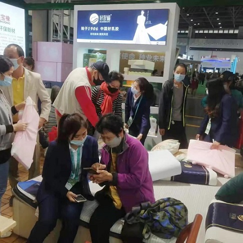 冬交會(huì)期間,好舒福乳膠制品公司共攜10余種乳膠產(chǎn)品到現(xiàn)場(chǎng)參展,不少參展嘉賓紛紛走進(jìn)“好舒?!闭刮?,親身感受天然乳膠寢具帶來(lái)的舒適睡眠體驗(yàn)?!按舜螀⒄勾矇|在全國(guó)統(tǒng)一價(jià)的基礎(chǔ)上打7折,其余小件低至5折?!焙D舷鹉z展區(qū)“好舒?!闭刮回?fù)責(zé)人趙鶴楠介紹。