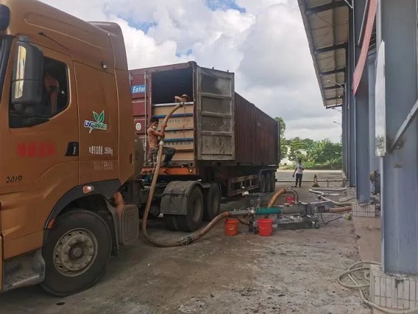 膠農(nóng)正在卸膠水。