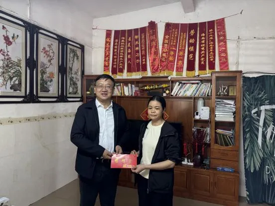 海南橡膠黨委副書記、總經(jīng)理?xiàng)钣钜恍懈凹逾O分公司,走訪慰問了全國勞模、海南橡膠赴非專家虞海濃的家屬。